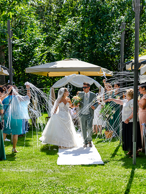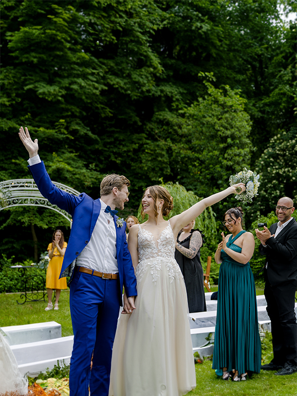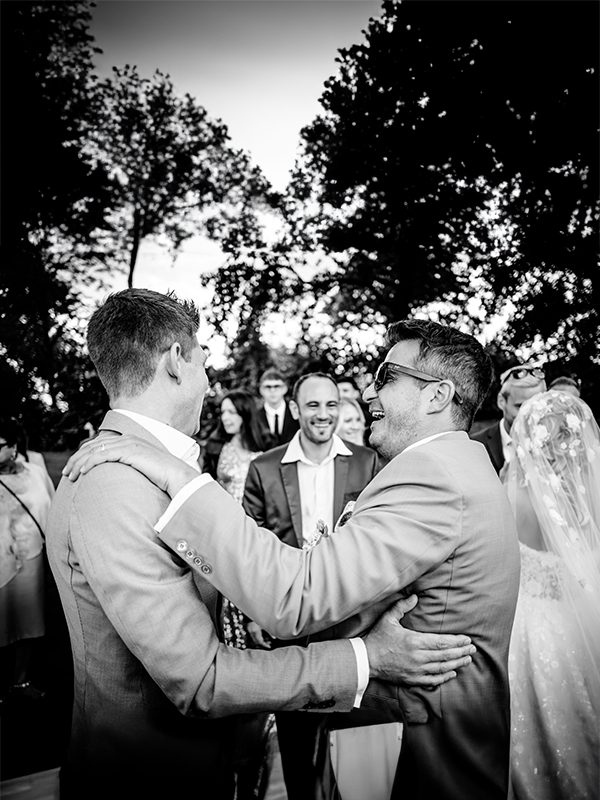Nach der Trauung beginnt der Moment des Ankommens. Die ersten Glückwünsche, herzliche Umarmungen und echte Freude liegen in der Luft. Beim Anstoßen, Lachen, Küssen und manchmal auch bei Freudentränen entstehen lebendige, authentische Bilder voller Nähe