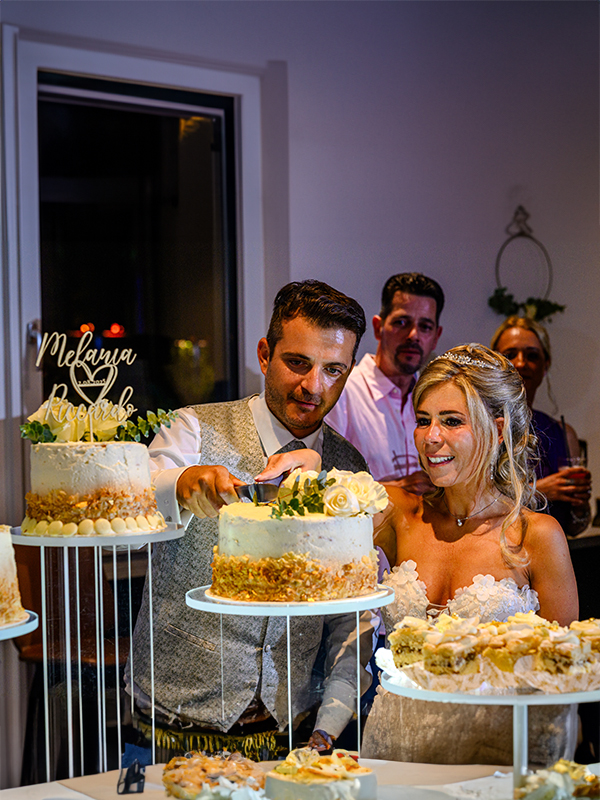 Der Anschnitt der Hochzeitstorte ist ein liebevoller Höhepunkt eures Tages. Wenn ihr diesen Moment gemeinsam erlebt, entstehen natürliche, lebendige Bilder voller Freude. Die Torte selbst, eingebettet in Dekoration und Licht, wird dabei zu einem echten Blickfang – ideal für stimmungsvolle Detailaufnahmen.