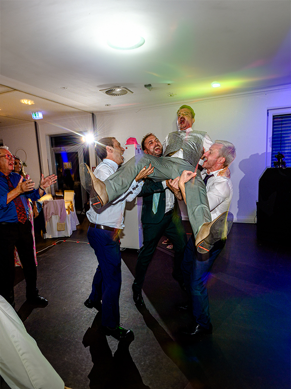 Im Anschluss geht die Feier in ihren ausgelassenen Teil über. Auf Wunsch begleiten wir euch bis in die späten Stunden und halten die Energie der Party fest: tanzende Gäste, lachende Gesichter und die besondere Stimmung, die entsteht, wenn alle loslassen. Auch der DJ und die Atmosphäre auf der Tanzfläche fließen in die Reportage ein.